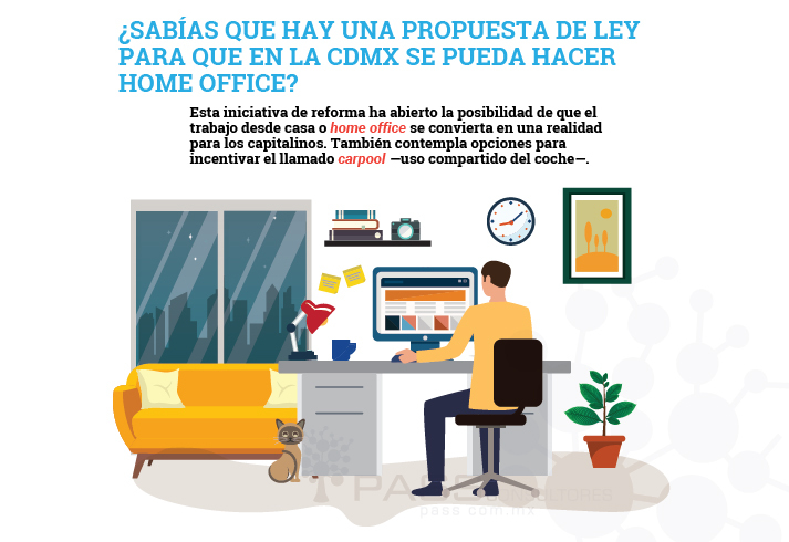 Esta iniciativa de reforma ha abierto la posibilidad de que el trabajo desde casa o home office se convierta en una realidad para los capitalinos. El diputado Diego Orlando Garrido López presentó una iniciativa por medio de la cual, por ley, los ciudadanos que realicen sus actividades laborales en la capital del país, podrían desempeñarse por medio de la modalidad de home office (trabajo en casa). De la misma forma, su propuesta contempla opciones para incentivar el llamado carpool (uso compartido del coche). Hay empleados que viven o deben transitar por la ciudad, recorren hasta 50 kilómetros, para lo cual algunos hacen hasta tres horas de...